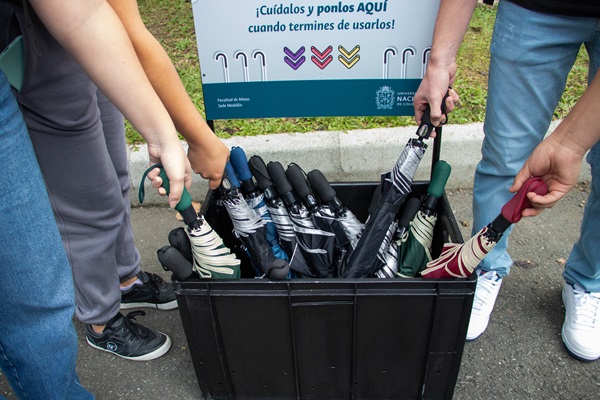 “Profesores, administrativos y miembros del grupo primario de la Facultad se unieron para financiar la compra de los paraguas a través de donaciones voluntarias. Lo que empezó con tres paraguas adquiridos de manera experimental, rápidamente creció hasta reunir recursos suficientes para comprar más de 50 unidades, gracias al aporte solidario de docentes y personal de diferentes dependencias”, detalló Sigifredo Uribe Zuluaga, asistente administrativo de la Facultad de Minas Unal.